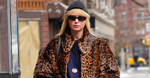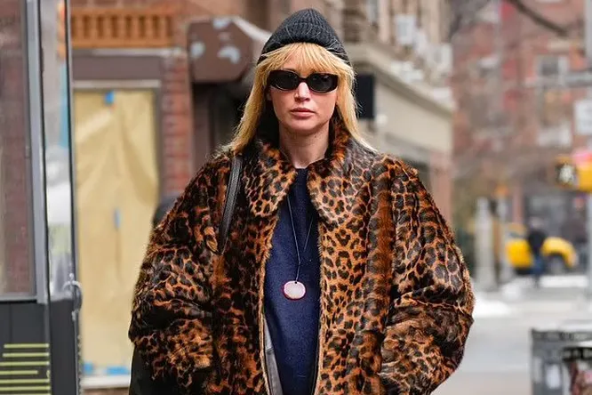 Беременную Дженнифер Лоуренс в леопардовом пальто поймали папарацци