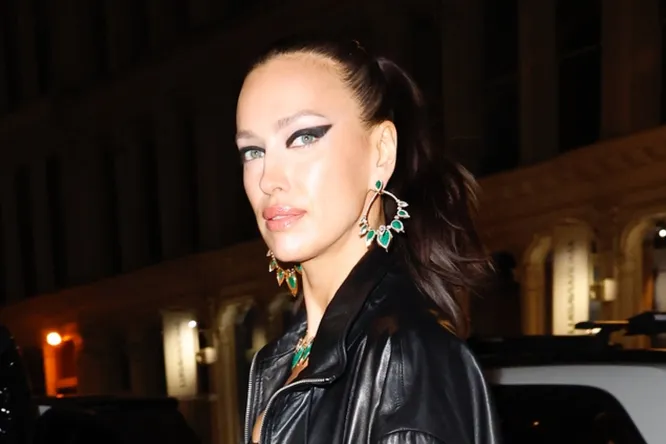 10 эффектных фото — Ирину Шейк с макияжем в стиле вамп и в кожаной куртке сняли папарацци