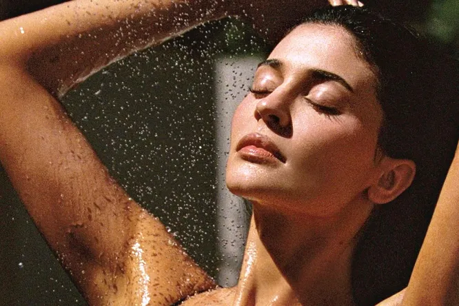Младшая сестра Ким Кардашьян предстала в черном бикини с контрастными белыми кружевными вставками. Кайли оставила волосы распущенными и почти отказалась от макияжа. Она позировала на улице у бассейна под струей душа.