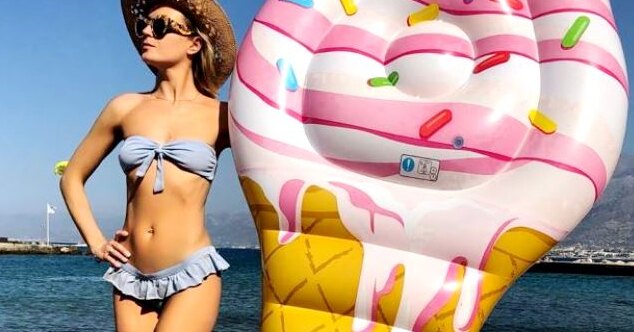 В руках Гагарина держала большой матрас в форме красочного мороженого. Поп-звезда строго следит за своим рационом, но в выходные сделала послабления в правилах.