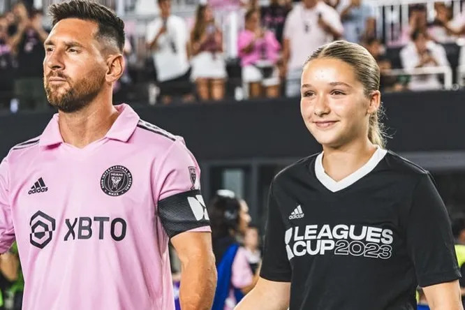 Харпер вышла на поле на стадионе в Форт-Лодердейле, штат Флорида, вместе с аргентинцем Лионелем Месси перед четвертьфинальным матчем Кубка Лиги команды «Интер Майами» против «Шарлотт».