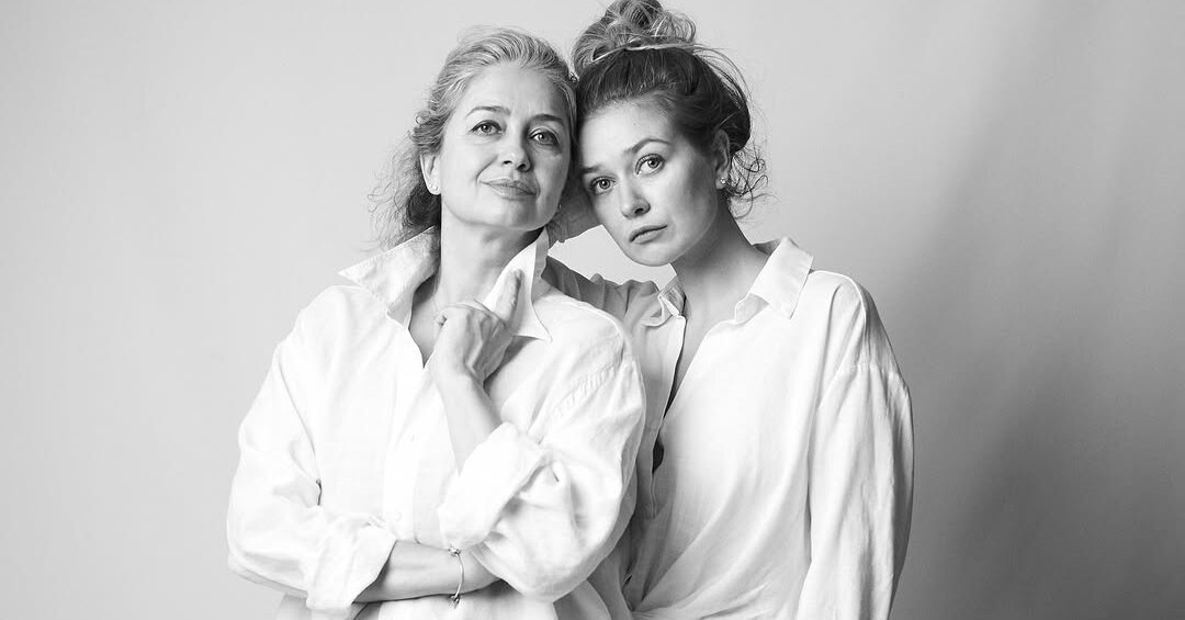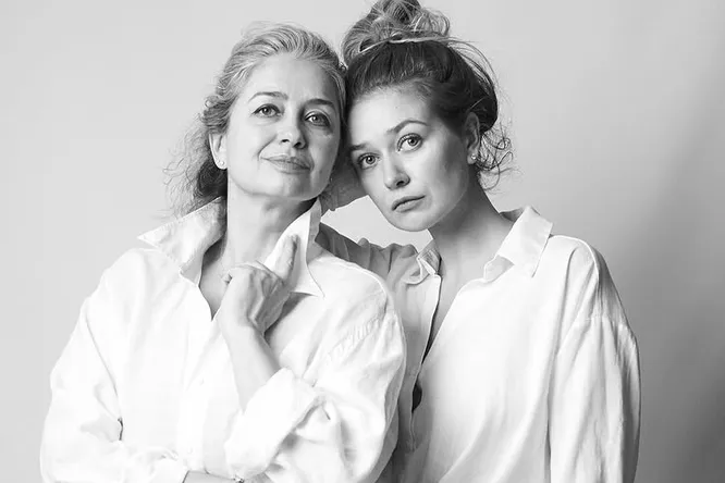 Звезда комедийного сериала «Праздники» устроила фотосессию с матерью Еленой в честь ее 50-летнего юбилея. Актриса позировала в студии рядом с именинницей. Все кадры были сделаны в черно-белом стиле.