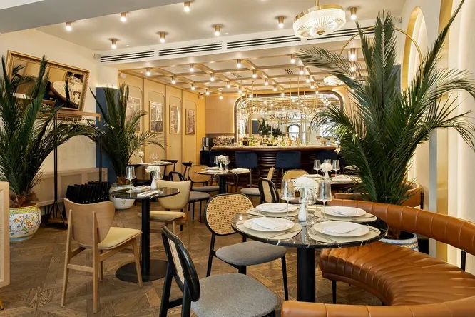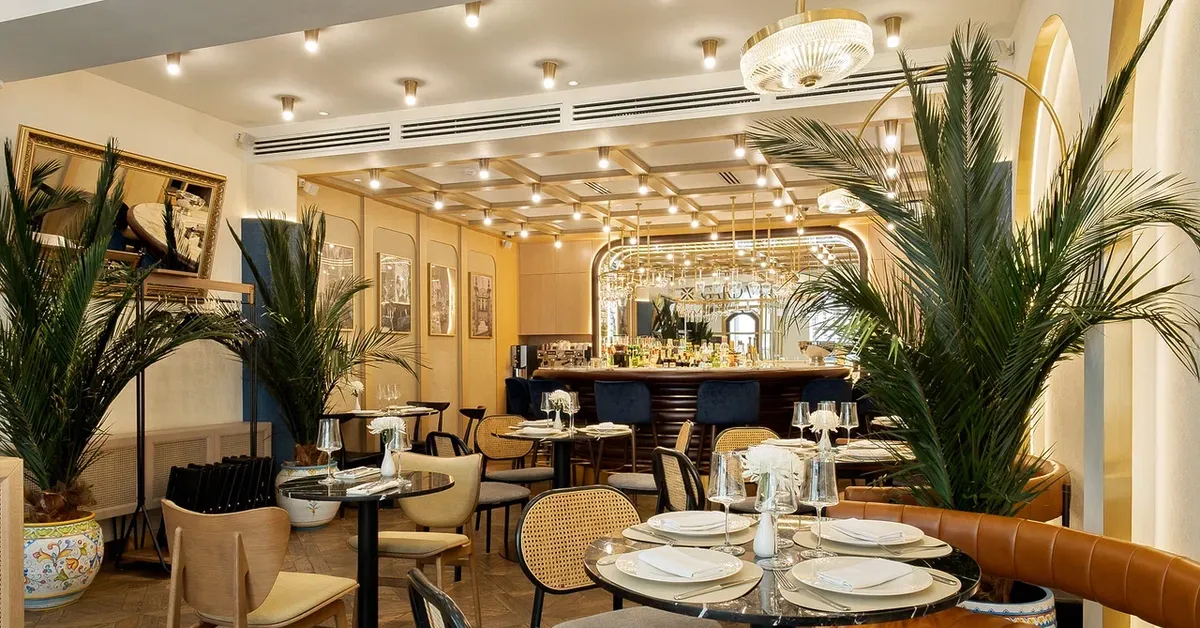 В интерьере воссоздали непринужденное настроение итальянского кафе, которое могло бы оказаться в лобби дорогого отеля в Милане или на площади Сан-Марко. Цветовая гамма в светлых, шоколадных и золотистых оттенках. Главные объекты притяжения — коричневый кожаный диван и стулья в глубоком синем цвете, который напоминает волны Средиземного моря. Центральный элемент — круглая барная стойка, за которой можно собираться с друзьями и потягивать Bellini или выпить по шоту эспрессо и отправиться по делам. Пальмы и фотографии с итальянскими мотивами добавляют пространству жизни, а рассеянный мягкий свет и посуда в винтажной расцветке наполняют теплом и уютом.