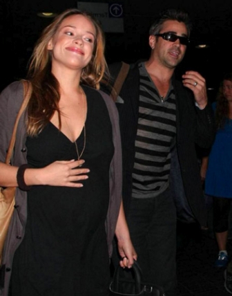 Снимки были сделаны в аэропорту Лос-Анджелеса. Колин и Алисия пробирались вместе сквозь толпу пассажиров, при этом девушка закрывала живот левой рукой.