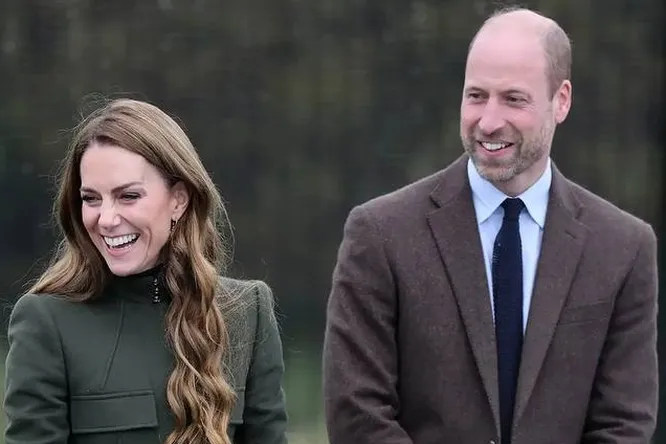 Кейт Миддлтон выбрала для визита лаконичное темно-зеленое пальто, а ее избранник облачился в классическую белую рубашку с галстуком, коричневый пиджак и темно-синие брюки. Примечательно, что у королевской четы была одинаковая замшевая обувь.