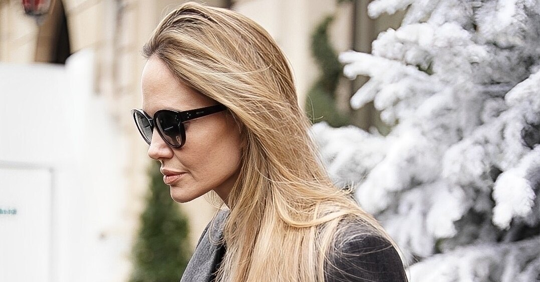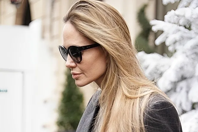 Джоли предстала в элегантном образе. Она надела блейзер, рубашку по фигуре и строгие брюки. Финальным штрихом образа стали туфли на высоких каблуках. Анджелина оставила распущенными волосы. Она завершила ансамбль массивными солнцезащитными очками.