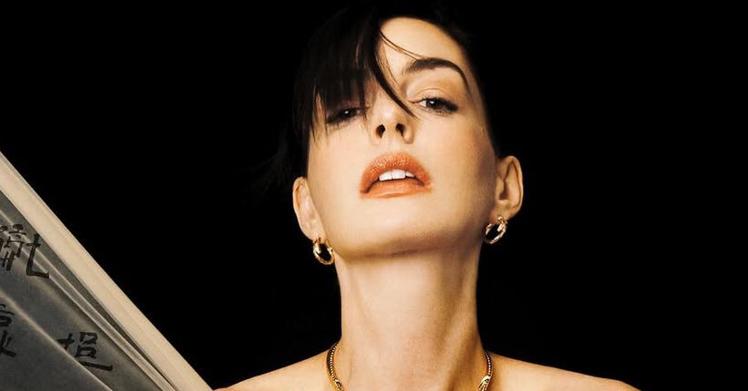 Энн Хэтэуэй в золотом платье-кольчуге с обнаженной спиной снялась для китайского глянца