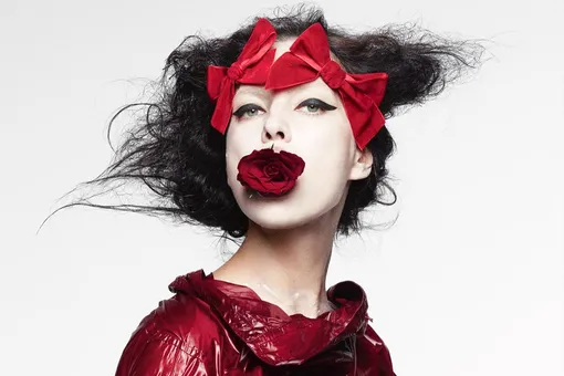Ирина снялась в фантазийных нарядах пестрых оттенков. Стилисты обыграли весну и с помощью «цветочной» маски, которая на некоторых снимках скрывала лицо модели.