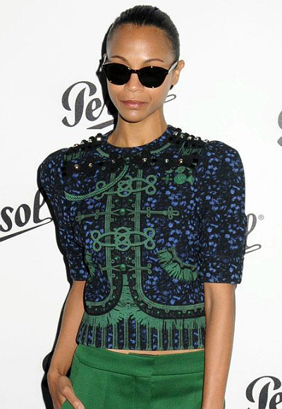 Элементы стиля милитари не всегда выглядят строго и брутально. Поэтому актриса Зои Салдана и предпочла похожий на мундир жакет: он делает ее еще более женственной.