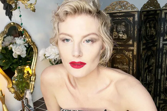 Светская львица сфотографировалась в ванной комнате в окружении маленьких зеркал, ароматизированных свечей и косметики. Позади актрисы находилась деревянная ширма коричневого цвета. Инстадива устремила загадочный взгляд в сторону.