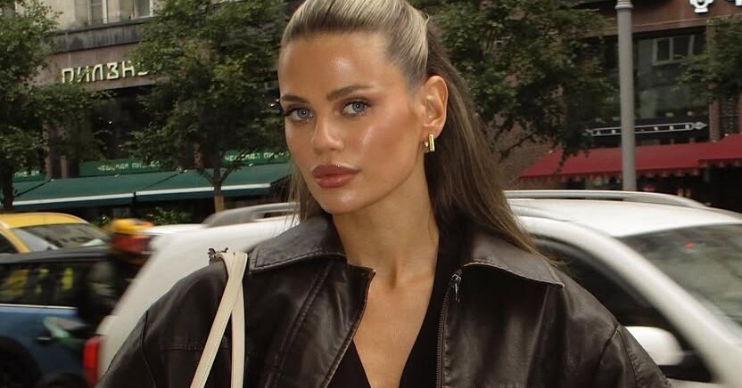 Избранница артиста гладко зачесала русые волосы назад и сделала броский макияж. Она надела черную блузку с V-образным вырезом, кожаную куртку-косуху и белую мини-юбку. Звезда соцсетей дополнила аутфит стильной сумочкой в тон юбке и кожаными высокими сапогами.
