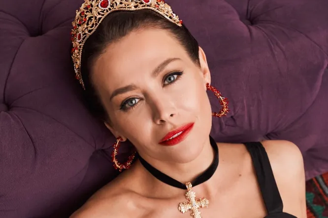 Актриса примерила яркий образ. Екатерина Волкова позировала в сексуальном платье и в короне, украшенной красными камнями.