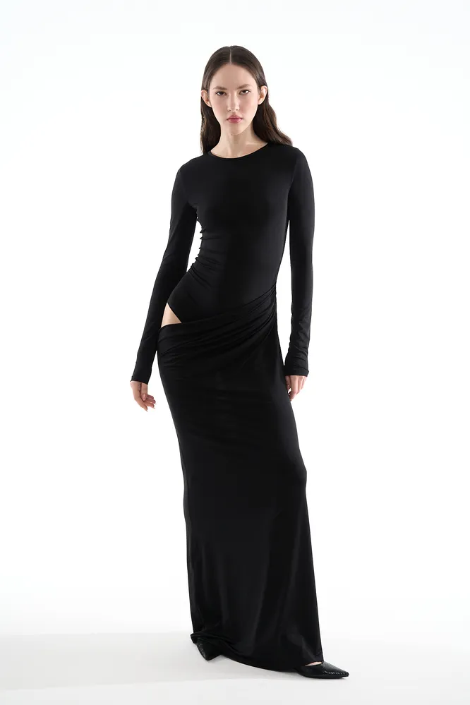 Для таких особенных свиданий дизайнер Евгения Линович создала платья, воплотив в каждом женственность, страсть и сексуальность с присущей бренду утончённостью. На этот раз представлены модели в минималистичном стиле с акцентом на облегающих, подчёркивающих изгибы фигуры силуэтах, сложном крое и деталях. Например, в летящем платье-русалке спину украшает нежный вырез на спине в форме сердца, в платье макси замысловатая сборка создаёт соблазнительную линию бёдер, а элегантное боди плавно переходит в кокетливую пышную мини-юбку.