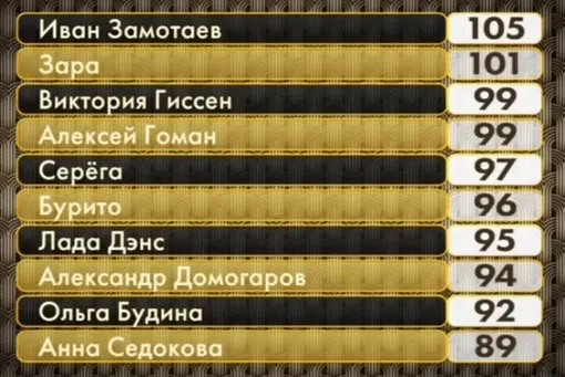 По итогам пяти выпусков Анна с 89 баллами занимает последнее место на проекте. А лидирует Иван Замотаев – у него 105 баллов.