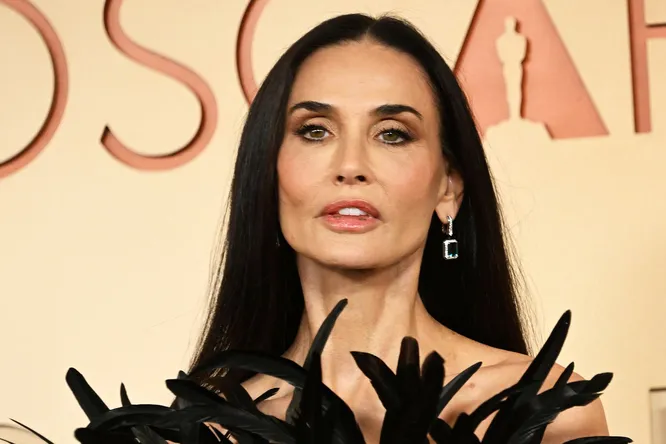 В кинотеатре «Долби» в Лос-Анджелесе состоялась 98-я церемония вручения наград премии Американской академии кинематографических искусств и наук «Оскар» за заслуги в области кинематографа за 2025 год. Деми Мур выбрала для выхода в свет облегающее платье в пол с открытыми плечами, декорированное черными перьями и чешуей изумрудного цвета.