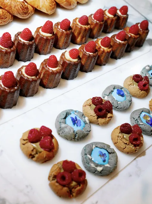 Неизменным остается большая мраморная витрина с коллекцией десертов, уже завоевавших популярность гостей. Свежая выпечка, фирменные сферы в голубом и розовом цвете, полюбившийся куб с начинкой сникерс и новый раздел десертов без сахара: элегантная клубничная сакура, пирожное баноффи, свежайшие крамбл кукис «из-под ножа» с цитрусами, фисташкой и голубой матчей. В течение всего дня кондитерская предлагает завтраки, пасты и культовые сэндвичи to go.
