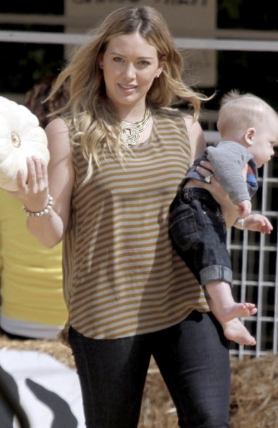 У актрисы и певицы Хилари Дафф на все хватает сил и времени: в одной руке он несет своего малыша, а в другой – огромный патиссон. Наверное, из чудо-овоща Хилари собралась приготовить ужин. А может быть, это достойная альтернатива традиционной тыкве на Хэллоуин?