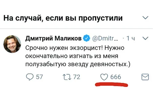 Песни Маликова слушали еще наши мамы, возможно даже, что бабушки, а теперь в его Твиттере почти миллион подписчиков! И неудивительно, все публикации певца пронизаны юмором и самоиронией.