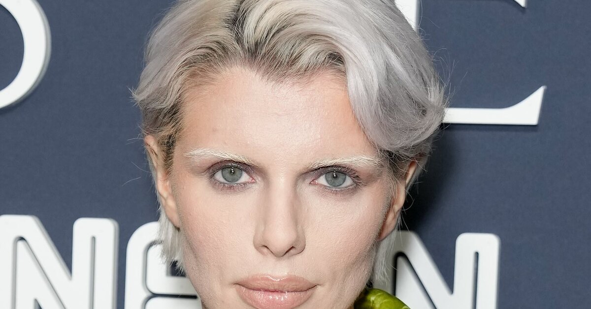 Пепельный блонд, отсутствие бровей и драматический макияж дополняли общую картину. Джулия с кокетливой улыбкой позировала папарацци. Она явно осталась в восторге от своего нового аутфита.