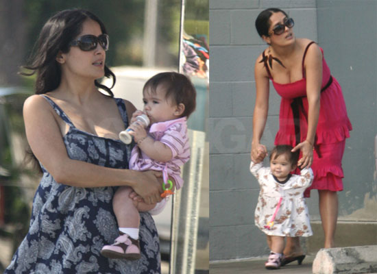 На днях папарацци сфотографировали, как Сальма Хайек помогала своей дочке Валентине переходить дорогу.