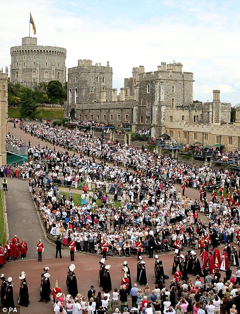 Брат новоиспеченного рыцаря, принц Гарри с улыбкой наблюдал за тем, как его бабушка, королева Елизавета II, повязывает своему внуку ленту через левое плечо и вручает орденскую звезду. После этого один из пажей принес принцу Уильяму синюю бархатную повязку.