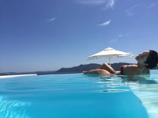 После долгих прогулок по городу Нюша спасается от жары в бассейне.