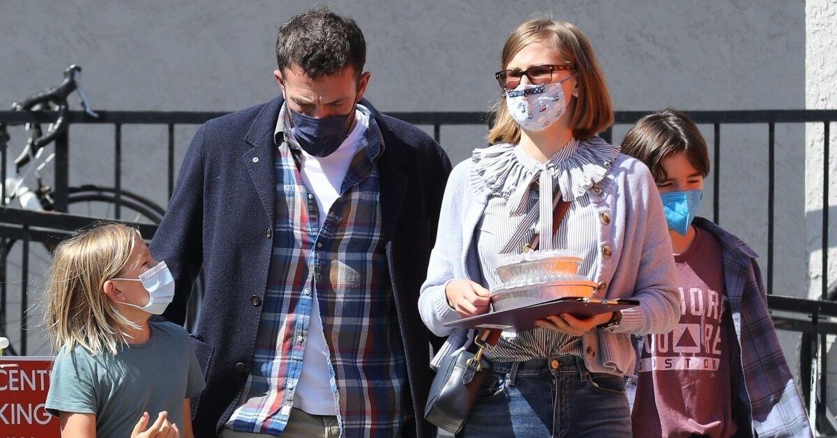 Вайолет уверенно вышла из автомобиля со стороны водителя. Очевидно, это была ее не первая поездка. 49-летний Аффлек сидел на пассажирском кресле. Младшие брат и сестра Вайолет вышли из машины через задние двери. Бен и дети проследовали через парковку к ресторану, чтобы провести время вместе за обедом.