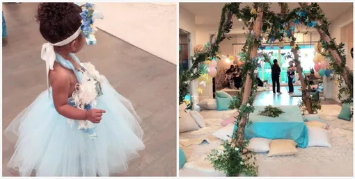 В Stories тетя Дрим, Хлое Кардашьян, показала, как прошло мероприятие. Стол был оформлен в виде волшебного леса, а кремовый торт с лепестками и зеленью привел всех гостей в восторг.