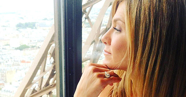 Фотография была сделана внутри Эйфелевой башни в ресторане Le Jules Verne. Дженнифер сидит вполоборота, ее рука подпирает подбородок, а помолвочное кольцо огромных размеров так и бросается в глаза. К снимку он добавил хэштег #eiffeltower и смайлик в виде розы.