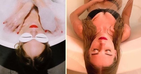 На фотографии, которую певица, выступающая под псевдонимом Глюк’oZa, разместила в Instagram (Социальная сеть признана экстремистской и запрещена на территории Российской Федерации), видно, как она лежит в большой круглой ванне. На Наталье смешные белые очки с полукруглыми прорезями. Из макияжа на ней только ярко-красная помада. Девушка дует на хлопья мыльной пены.