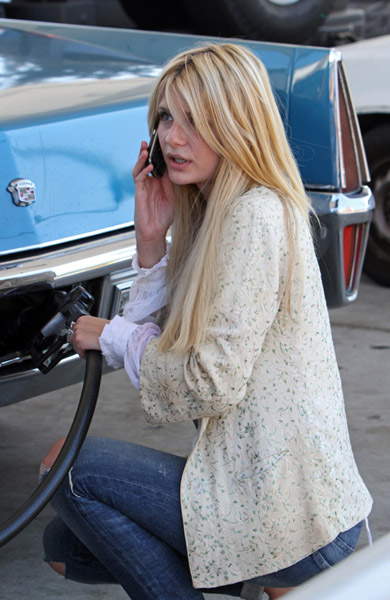 Актриса Миша Бартон не брезгует грязной работой: залить бензин в авто для нее не проблема.
