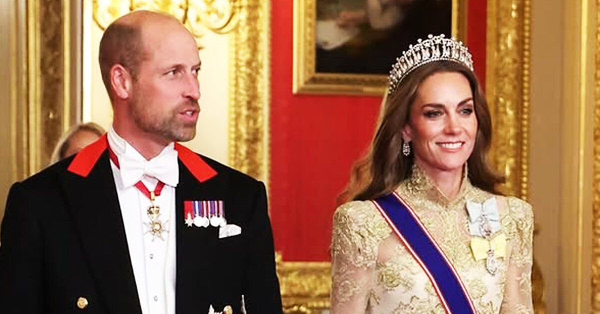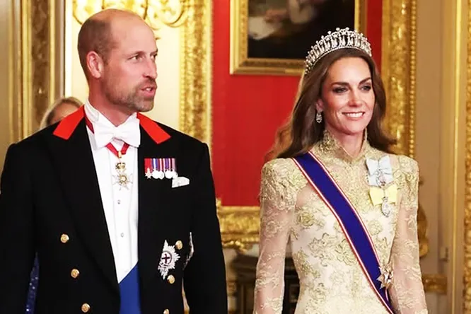 Кейт Миддлтон в золотом платье и тиаре принцессы Дианы появилась на банкете в честь приезда Дональда Трампа с женой