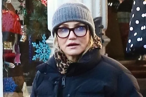 Кэмерон предстала в очень расслабленном образе тотал-блэк. Звезда надела черную куртку и объемные спортивные брюки. Она завершила образ комфортной шапкой и удобными ботинками. Главным аксессуаром Диаз стали очки «ботаника».