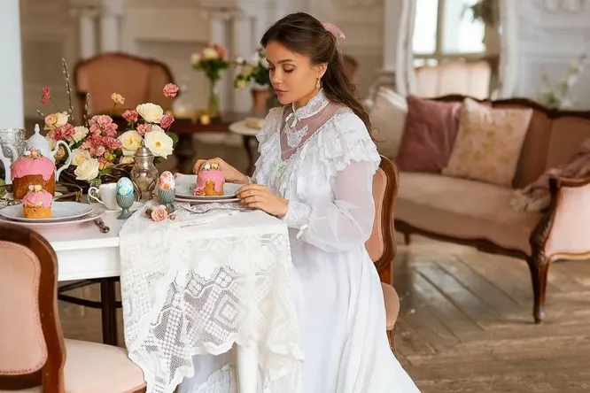 Накануне Пасхи её мама отправилась на поиски... белых яиц. Да-да, не просто яиц — именно белых. Это было необходимо: в доме уже ждали эксклюзивные, привезённые из Германии краски — необычные, редкие, с благородными оттенками: лиловый, пунцовый, ультрамарин, индиго.