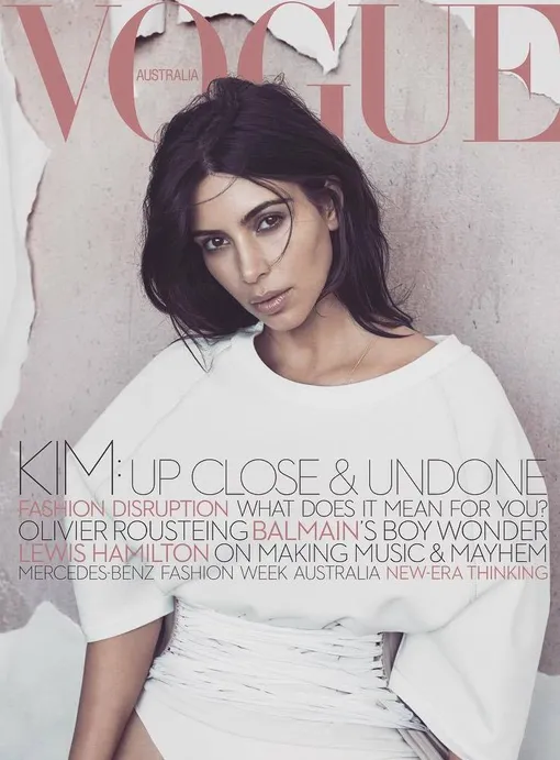 Первой «постродовой» фотосессией для глянца стала съемка для австралийского Vogue. Фотограф Лаклан Байли хотел представить Ким читателем «утренней», немного сонной и максимально естественной.