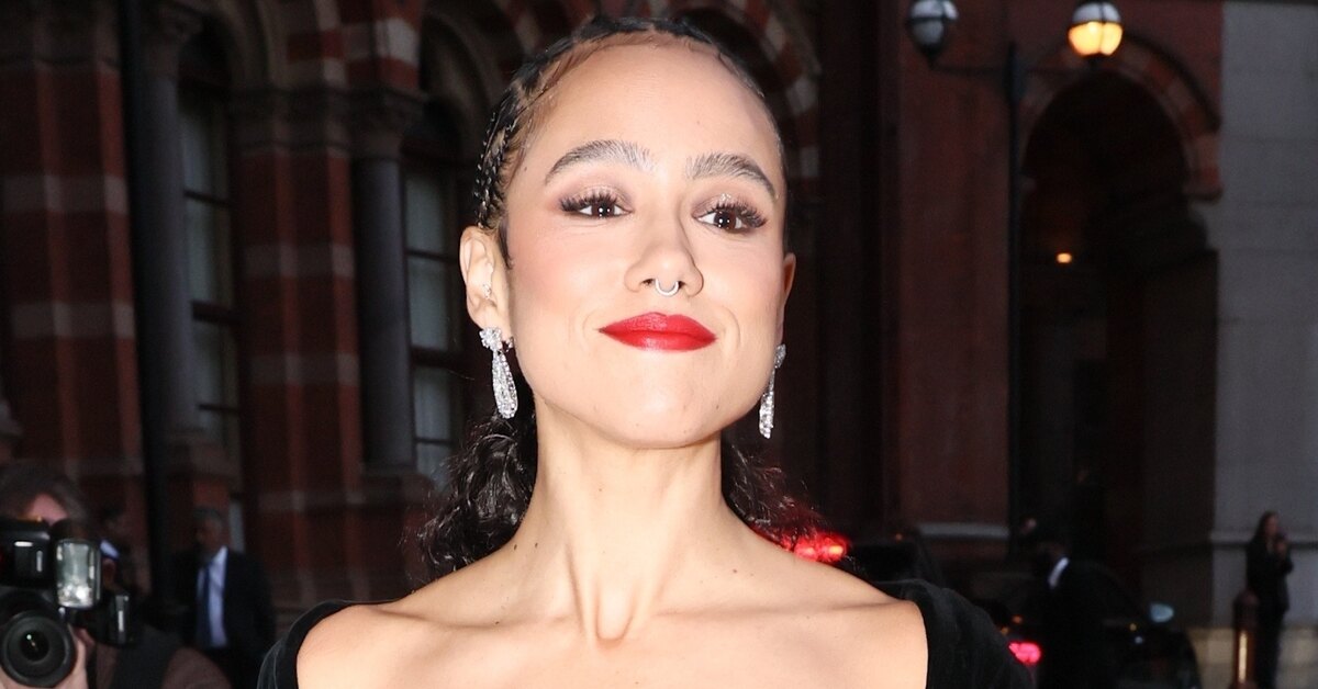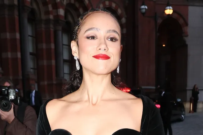 Звезда сериала «Игра престолов» Натали Эммануэль едва прикрыла грудь бархатным топом на Неделе моды в Лондоне