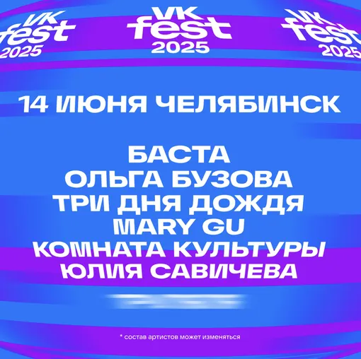 Челябинск принимает VK Fest в первый раз. Фестиваль пройдёт 14 июня. Перед гостями выступят Баста, Три дня дождя, Mary Gu, «Комната культуры», Ольга Бузова и Юлия Савичева. Казань тоже встречает VK Fest впервые — здесь событие состоится 29 июня. На сцену выйдут Баста, Zoloto, ХЛЕБ, Три дня дождя, «Комната культуры», Юлия Савичева. В Сириусе 21 июня выступят Три дня дождя, «Комната культуры», Юлия Савичева, BLIZKEY и JANAGA. Список артистов в городах будет дополняться.