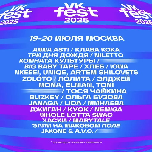 «На десятом VK Fest мы наравне со звёздами российской сцены широко представляем новую школу. Это таланты новой рэп-сцены, поп-музыки, инди и других модных направлений. Для нас круто видеть взлёт молодых артистов от фестиваля к фестивалю. Поэтому мы с радостью даём им возможность выступать на сценах VK Fest. В 2024-м на Фиолетовую в первый раз вышла Минаева, а в этом году она уже выступает на Белой сцене, рядом с Хаски и Тосей Чайкиной. nkeeei и "Комната культуры" в 2025-м поют уже с Синей. Ещё пару лет назад у них была более камерная аудитория, а сегодня они на одной сцене с Бастой, Лолитой, Клавой Кокой и ANNA ASTI. Нас ждёт удивительный и яркий лайнап на каждой из площадок фестиваля!» — сказала руководитель VK Fest Зоя Новикова.