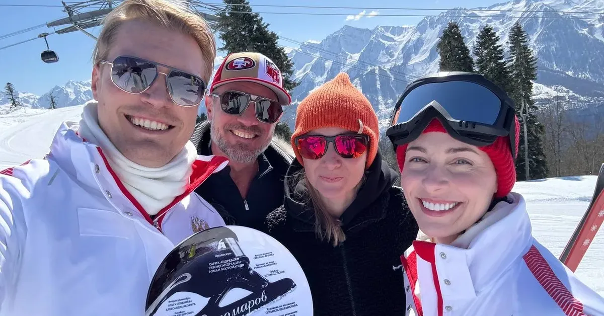 Сегодня Анна Снаткина показала снимки, сделанные во время первого съемочного дня. Актриса сериала «Дети перемен» позировала вместе с фигуристом, его женой, режиссером и другими актерами. Телезвезда была одета в горнолыжный костюм и позировала на фоне заснеженных скал.
