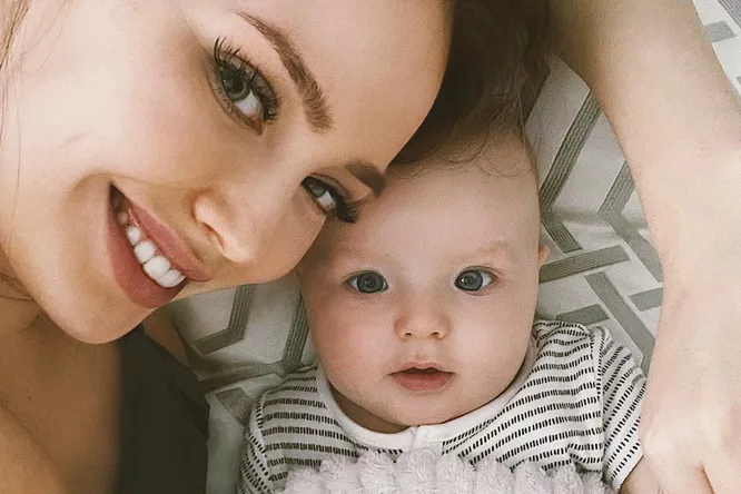 Молодая мама сделала селфи в кровати. Титулованная красавица с улыбкой смотрела в объектив. Малыш с широко раскрытыми глазами лежал рядом с ней.