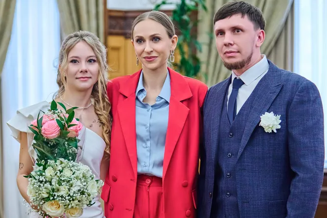 Моргунова не просто поздравила молодоженов, но и добавила в их праздник немного волшебства. Она привезла во дворец памятный артефакт со съемок – кубок Гименея, дарующий вечную любовь.