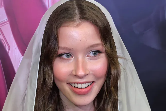 Анна отдала предпочтение корсетному платью-мини с открытыми плечами и рукавами-фонариками, сделала легкие локоны и примерила на голову белый палантин. Она дополнила образ полупрозрачными лодочками на шпильке. В разговоре с VOICE Пересильд отметила, что наряд не связан со свадебной тематикой и статусом невесты. «Этот образ про белое. Про чистоту, про эстетику. Капюшон — это про таинственность. Со свадьбой это никак не связано, это связано с сегодняшней премьерой», — поделилась Пересильд.