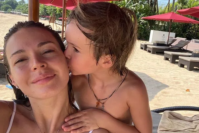 Агния Дитковските в бикини снялась с пятилетним сыном на балийском пляже