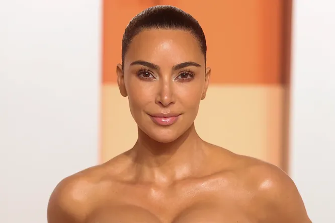 Ким Кардашьян засветила полуобнаженную грудь в кожаном платье с провокационным декольте