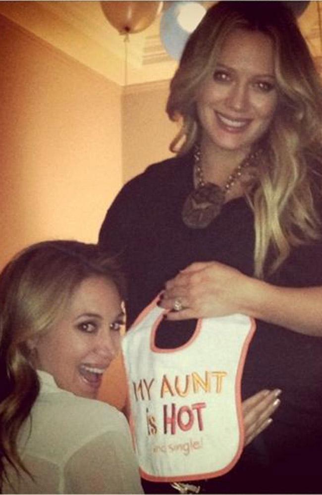 Сестра Хилари, Хайли, опубликовала фотографию в Twitter, на которой она позирует рядом с Хилари, держащей нагрудник с надписью «Моя тетя горяча».