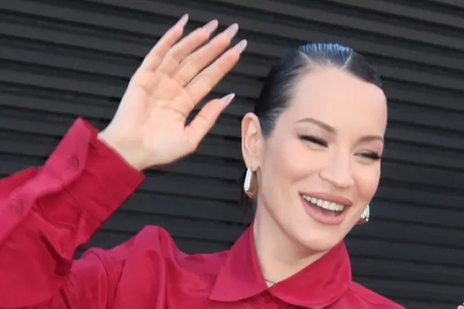 Галич сделала гладкую укладку, собрав темные волосы в пучок. Она нанесла выразительный макияж с акцентом на светло-коричневой помаде. Ида надела телесный топ и бордовый костюм — свободный верх и легкие брюки с мягкой резинкой.