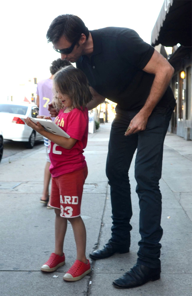 Хью Джекман учит 6-летнюю Аву работать с IPad.