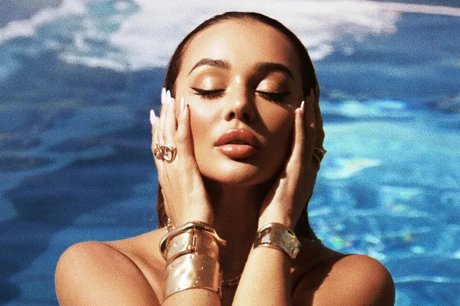 Певица примерила бикини с леопардовым принтом и со вставками в виде «золотых» колец. Миниатюрный наряд подчеркнул стройную фигуру Анны, ее тонкую талию и точеный пресс. Оттенок купальника выигрышно смотрелся на загорелой коже звезды.