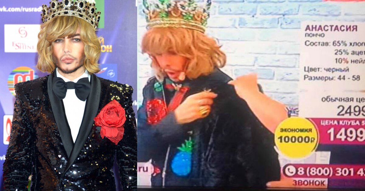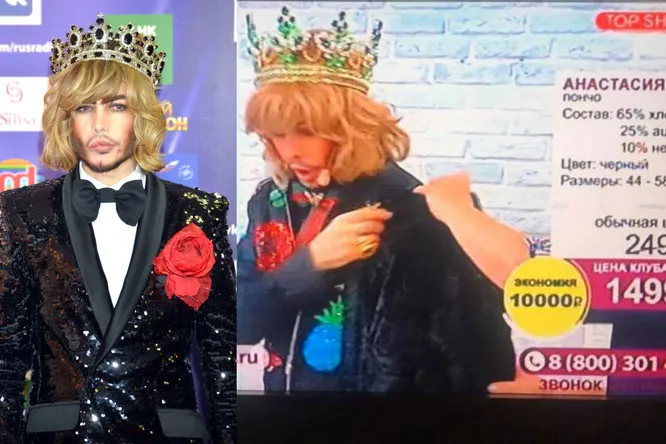 Сергей Зверев в короне продает одежду для «пышек» в эфире телемагазина Top Shop