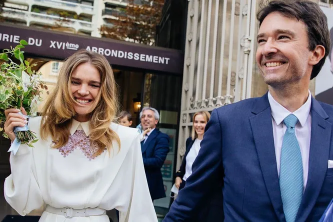 Её 42-летний избранник выбрал синий костюм, который сочетал с белой рубашкой и голубым галстуком. Влюбленные зарегистрировали брак в парижской мэрии. Наталья и Антуан вышли из стен здания за руки, бизнесмен продемонстрировал синее свидетельство о браке. На пороге мэрии молодоженов встречали радостные гости, которые осыпали их лепестками белых роз.